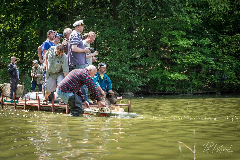 Po polední pauze následovaly hromadné starty vytrvalostních závodů. Nejprve kolesových parníků, které se daly do pohybu jen tři. Po čtvrthodinovém klání zvítězil Danton Petra Stejskala.