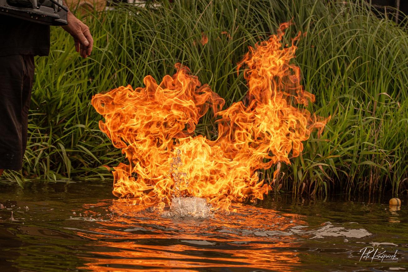 Snad i tato letová ukázka způsobila, že jsem večer neodolal a vytáhl z auta nedávno pořízený hydroplán. Po několika pokusech, kdy jsem namísto vzletu zajel do rákosí, se model na chvilku vznesl. Užuž jsem ho chtěl uklízet, když se mi nabídl Miroslav Beneš s tím, že ho zaletí. Po chvilce vzlétl a dokonce to vypadalo, že hned začal s akrobacií, když Piper přešel v let na zádech, jenže show netrvala dlouho. O sekundu později již práskl do vody. Odnesla to maketová vzpěra křídla a vylomený plovák. Ten je již zpátky na svém místě a vzpěra bůhvíkde. Tím byl letecký den ukončen.