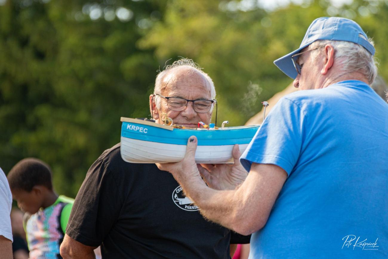 Co do účasti bývá sobota pravidelně silnější. Po čase se s parníkem ukázal Pavel Jakoubek, bohužel jsem ho na vodě nezaznamenal. Hned dva parníky přivezl Pepa Darvaš, bohužel mu oba upadly na betonový chodník, tudíž ani letos do výsledků nezasáhl. Jedinou novou tváří, která se nechala k účasti zlákat a úspěšně dokončila soutěžní jízdu, byl Petr Lukeš (Bambinot). Sice skončil až třináctý, ale to vůbec nevadí. Povolané zapisovatele, kterým Petr Stejskal č. 1 vnutil svou Africkou královnu, nepočítám.