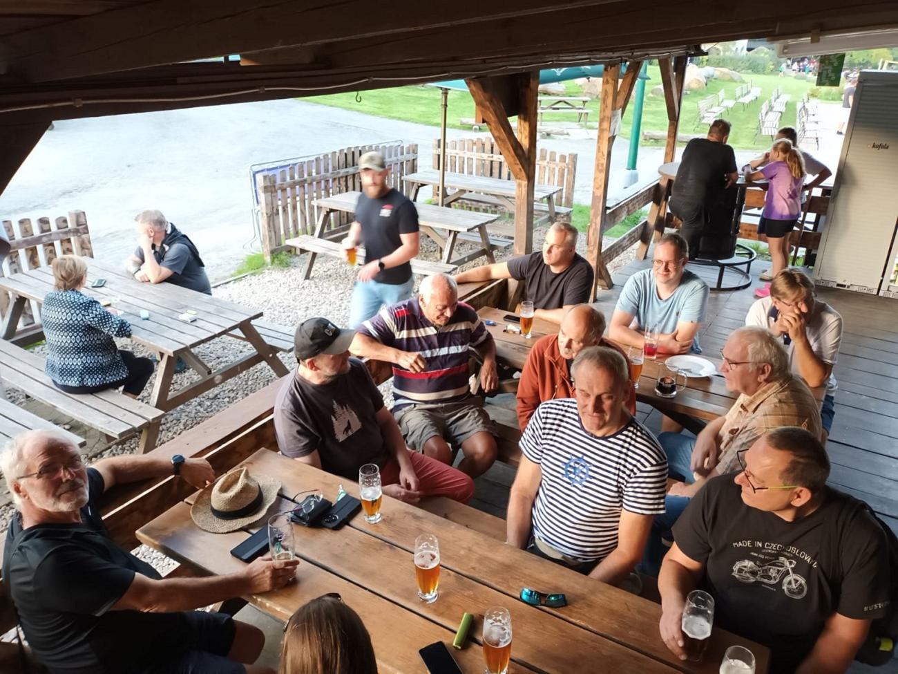 Nicméně účastníci se začali sjíždět již v pátek odpoledne. Třebaže jsem na poslední chvíli v nové práci u staronového zaměstnavatele dostal volno, nikam jsem se nehnal a rozhodně nepřijel mezi prvními. U kiosku asi 150 metrů od pláže bylo již živo. Přítomní parníkáři s rodinným doprovodem již stihli obsadit tři stoly, jakmile dorazili i ostatní, potřebovali jsme stolů dvojnásobek.