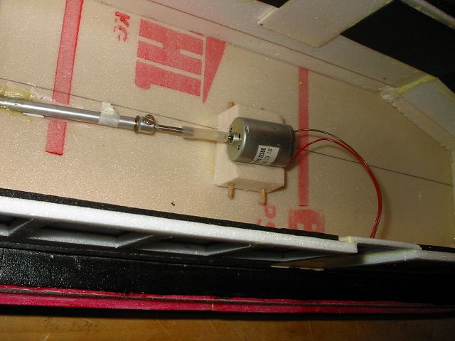 cca 130mm a lodní šroub, nejlépe třílistý o průměru 30-35mm. Do trupu uděláme pomocí nebozízku otvor pro