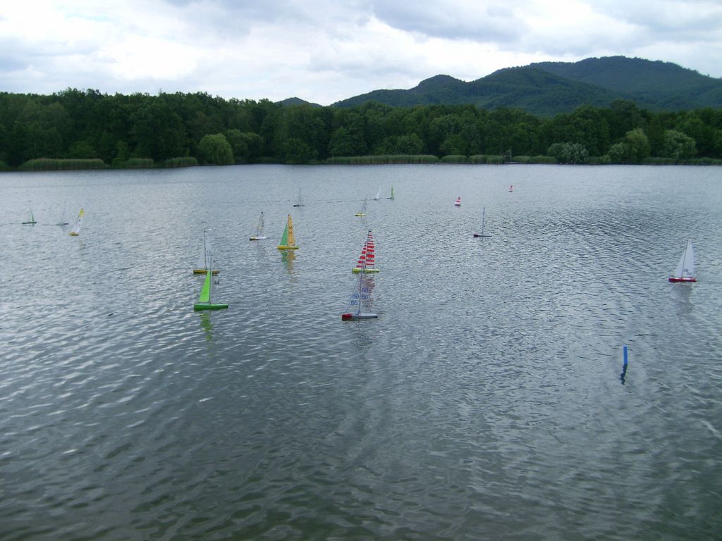 Posielam pár záberov zo seriálovej súťaže RG-65. Konečné nám počasie vyšlo. Svietilo slniečko, vetrík mierny ale tak trochu chaotický - preplesky zprava a zľava, ale inak super. Účasť výborná aj medzinárodná (z Moravy 1 účastník). Bohužial jeden náš kolega sa nechtiac vykúpal na tom šikmom betónovom brehu, obdoba brehu na Dářku, aj s výsielačom a už na konci súťaže. Škoda nemal som u seba foťák. Ja som skúšal mini Benjamina. Konečne. Predchádzajúce akcie v Senci boli krúté, pre veľké vlny a vietor.