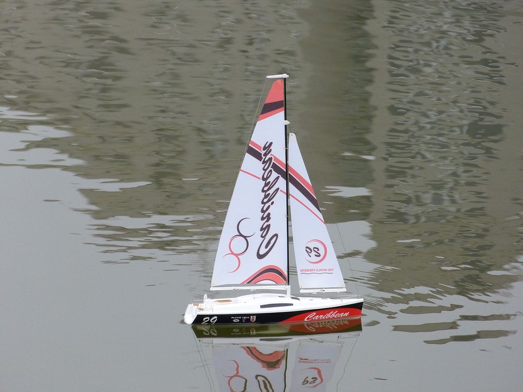 Do soutěže se zapojilo 7 modelářů, přičemž jsme mezi sebou uvítali jednu novou tvář v podobě Michala Moravce, který nasadil hračkovou Caribbean. K jeho smůle jsem ho při jedné z posledních jízd nabral čelenem, který na mé poděděné Footy zbyl. Nejprve se plachetničky nechtěly od sebe vůbec odpoutat, následně se mi podařilo dojet do cíle a Carribean zůstala neřízená na vodní hladině. Springer tak dostal svou příležitost, ovšem na tak malý oplachtěný model jako vhodný záchranář předurčen není. Nicméně po chvíli snažení se záchranná mise podařila.