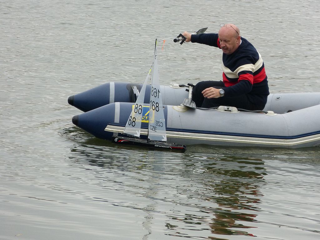 Začali jsme úderem desáté hodiny dopolední soutěží plachetnic RG-65. Do té se zapojilo 9 modelářů. Po třech soutěžních jízdách k velkému překvapení zvítězil MB/RomanT. Po krátké pauze, vyplněné vyhlášením výsledků a zmenšením soutěžní tratě, se na vodu pustily plachetnice třídy Footy v rámci 4. soutěže soutěžního seriálu Footy v Čechách 2017. 6 startujících modelů je hluboko za rekordní účastí na srpnovém Proseku, kde spolu soutěžilo 10 plachetnic. I tak šlo o zajímavé klání ve slabém vánku.