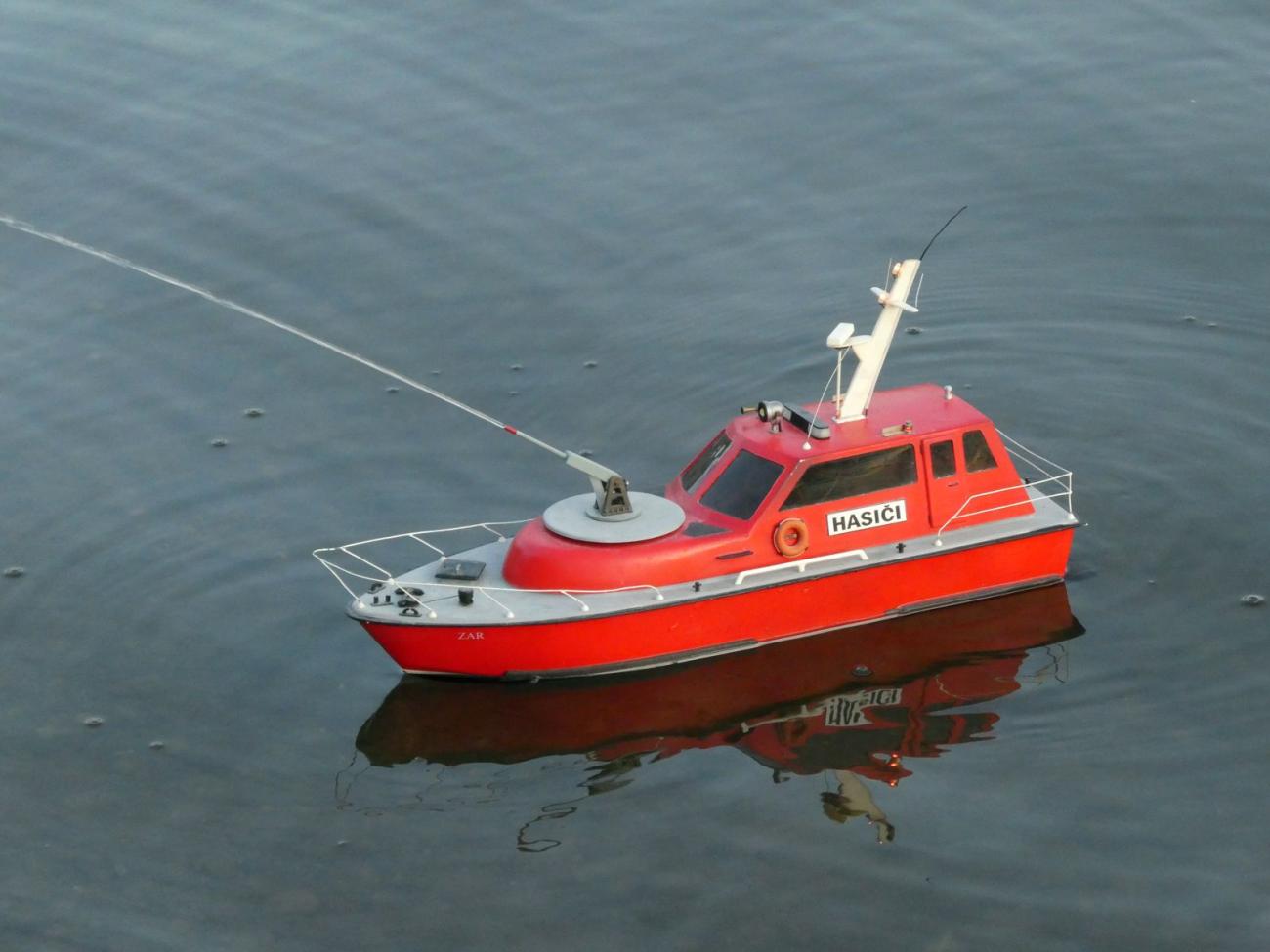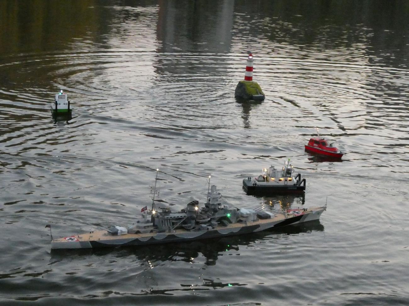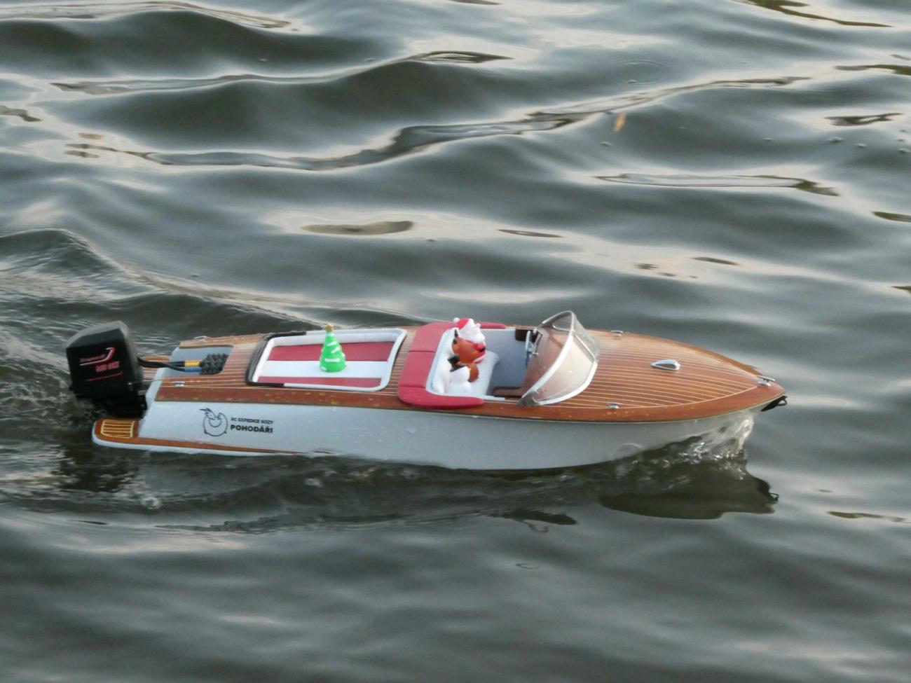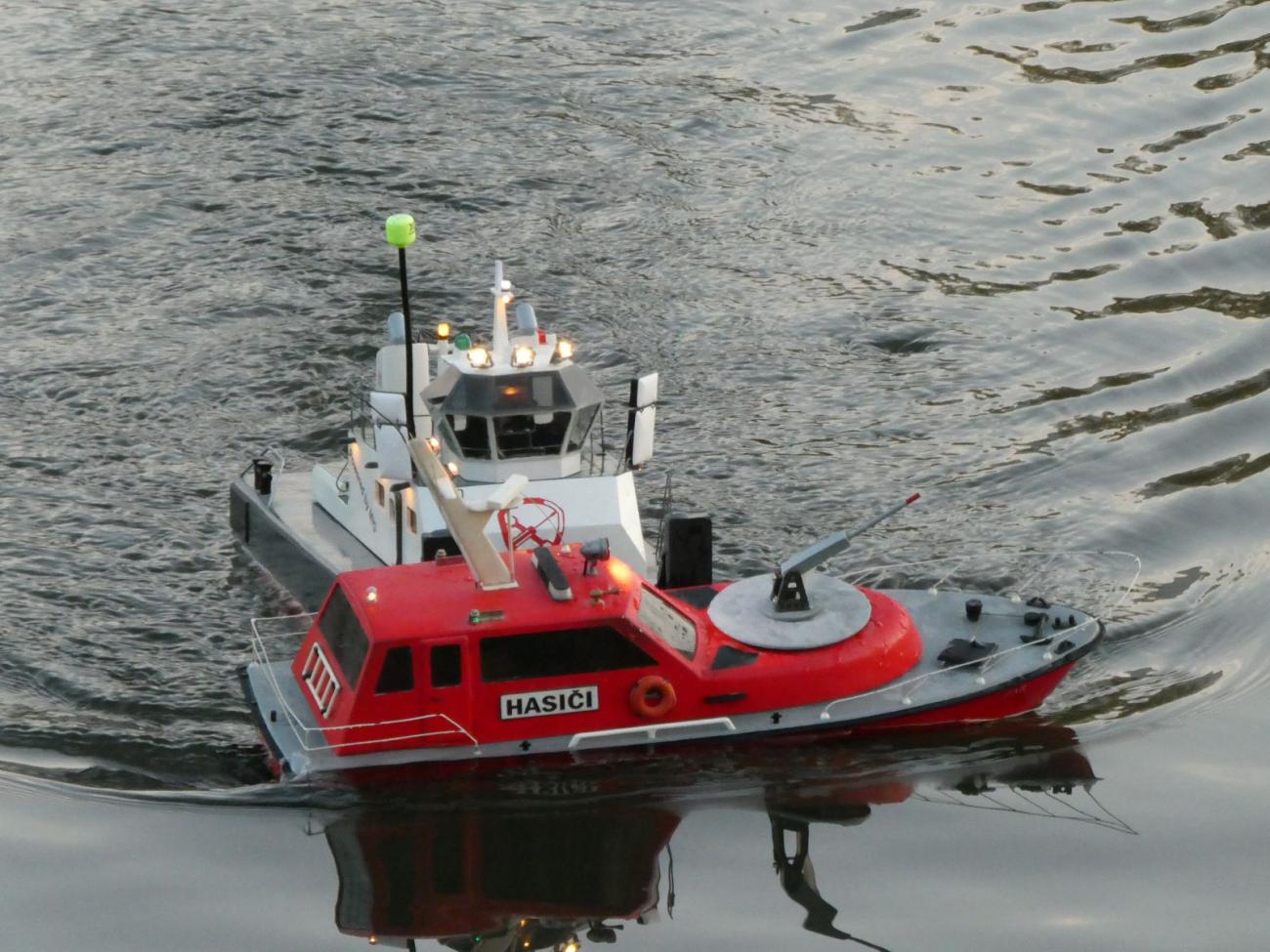 Nejspíš i proto se někteří účastníci na místo vydali zhruba o hodinu dříve. Byl mezi nimi i bývalý vedoucí kroužku Jirka Čelikovský. Ten však dorazil bez modelu a záhy po oficiálním začátku akce musel jinam, což je bezesporu škoda, jelikož jeho kontejnerová loď je za tmy úchvatná. Sám jsem poněkud zanedbal přípravu a narychlo před odjezdem z domu vzal jen Springera, když v původně zamýšleném modelu nebyl regulátor s redukčním kabelem. To je tak, když máte doma kolem 10 lodí s elektromotorem a jen dva regulátory. Kdybych se k odjezdu začal chystat dříve, v nějakém modelu bych ten kabel našel. O ten šlo především.