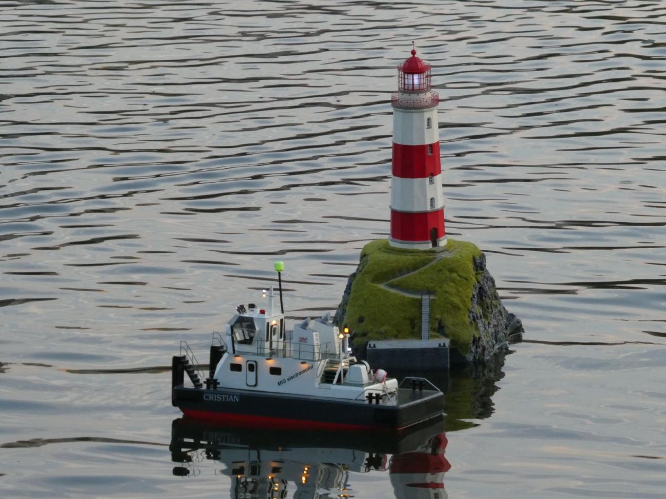 Již při mém příjezdu byl na hladině útes s majákem, který měl ten den premiéru, jak se později pochlubil Dejv. U vody nechyběli Vojtové Kuchta a Tomek, ukázali se též Jirka Masník a Svenny. A pak spousta lidí, které vůbec neznám, a co je potěšitelné i docela dost dětí. Jak s modely, tak v rolích diváků. Dorazil též nový vedoucí kroužku v DDM Stodůlky Michal.