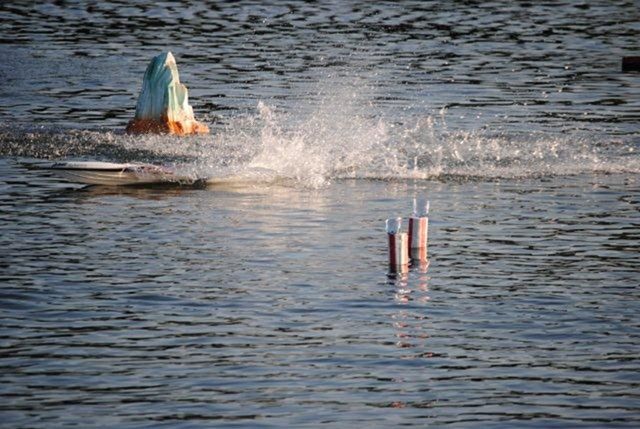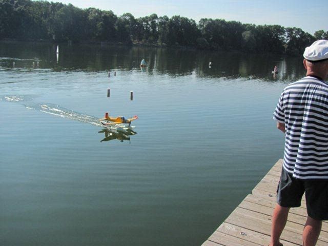 Model klub Otrokovice připravil trať pro lodní modely, která se později ukázala jako problematická pro provoz hydroplánů. Holt chybami se člověk učí a tak napříště mají stavitele trati o čem přemýšlet. Také rychlíci se občas trefili do bójek a zakotvených, někdy i plovoucích lodí. V pátek přijelo 14 modelářů i s doprovodem a hladina se začala plnit. Naskytl se hezký pohled na rejdící modely jak ve vzduchu, tak na zemi. Trošku nás překvapila velká účast leteckých modelů - 6 strojů na plovácích, 12 létajících člunů a 9 pozemních strojů.