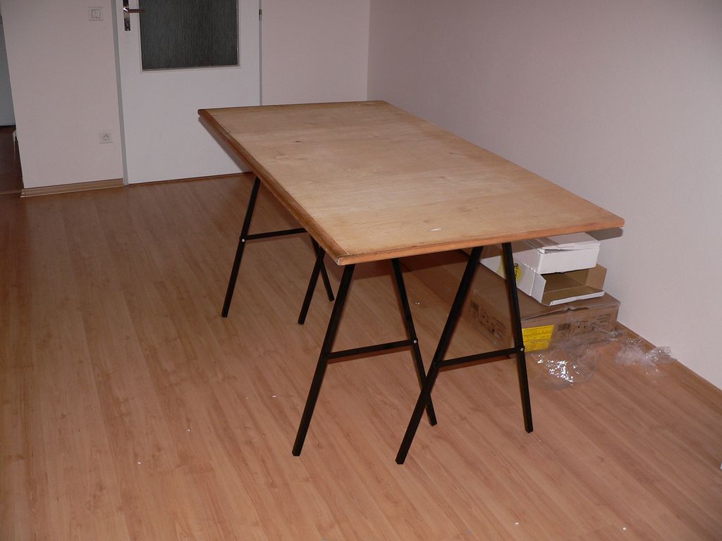 Už když jsem končil školu, tak jsem se nechtěl zbavovat desky rýsovacího prkna. Celkové rozměry byly 156 x 100 cm. Stále jsem přemýšlel, na co ji použít. Teď, když jsem se nastěhoval do nového bytu, tak jsem ji využil na pracovní desku.