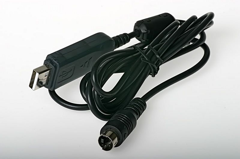 Pro připojení k PC je nutné mít převodník USB na RS232. Já jsem použil komunikační programovací kabel zakoupený k vysílači HobbyKing 6ch, který je ukončen konektorem S-Video. Zřejmě by šlo použít i jiné převodníky, např. s chipem FTDI. Pokud máte v PC sériový port, neznamená to, že připojíte nabíječ napřímo do PC. Logika z nabíječe je 5V TTL a PC používá +12V jako log0 a -12V jako log1. Takže pro propojení do sériového portu PC potřebujete převodník úrovní alespoň MAX 232.