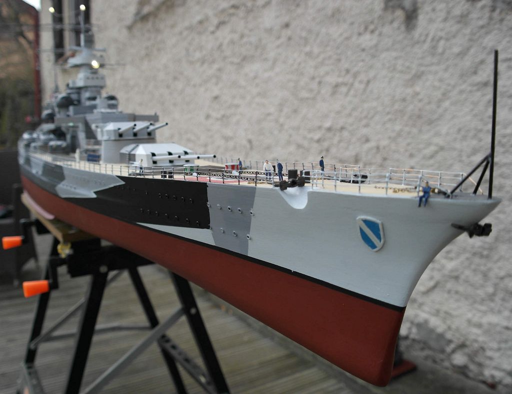 Když loni na jaře začala tahle bláznivá doba, bylo jasné, že budeme spoustu času trávit doma. Z toho vyplynulo rozhodnutí zas se pustit do stavby něčeho „většího”. Po stavbě IJN Mogami (už jsou to tři roky od dokončení) padlo rozhodnutí na stavbu lodi Scharnhorst. Měřítko bylo jasné 1 : 115 – jako Mogami, z čehož vychází celková délka cca 205 cm. Plán jsem měl doma již nějakou dobu schovaný, bohužel jen v měřítku 1 : 200. bylo nutné nazvětšovat žebrorysky (při délce 2 m+ vychází šířka na cca 30 cm).