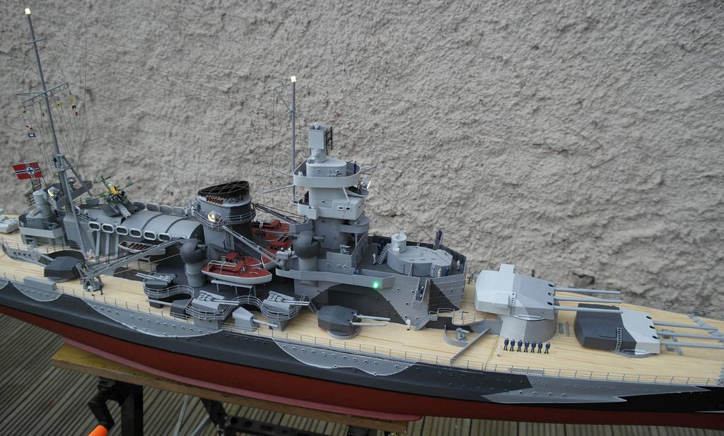 Hezké, po delší době se tu zas objevuje model podle mého gusta. Po Mogami další WW2 legenda. A rovněž obdiv k výkonnosti autorových "loděnic". Dvě takové velké lodě v rozmezí pár let je slušný výkon. I když je zřejmé, že se zrovna nejedná o super detailně propracovanou soutěžní maketu, stejně si stavba jistě vyžádala spoustu času. Na detailních záběrech jsou sice znát určitá zjednodušení a nedokonalosti, ale z mého pohledu to vůbec nevadí, sám bych to nesvedl lépe a celkové pojetí modelu se mi (stejně jako v případě Mogami) docela zamlouvá, za mě takový vhodný kompromis. Účelem není model zkoumat pod lupou, ale obdivovat při plavbě a při ní bude jistě na hladině působit dostatečně impozantním dojmem. Rád bych se dozvědel ještě více, než je uvedeno v článku, ale to by bylo na delší debatu. Nejlépe vidět naživo na nějaké akci. Tak doufejme, že se to letos na Lužinách povede.