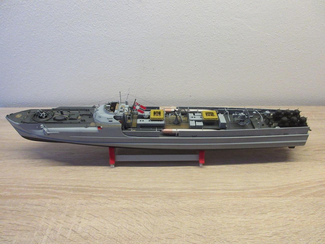 Stavebnice jako taková je poměrně detailní, avšak narazil jsem na několik nedostatků za prvé technického charakteru (především nepřesné slícování forem, a tudíž velké otřepy), za druhé ve zjednodušení některých detailů. Naštěstí jsou dostupné leptané díly. Při stavbě doporučuji sledovat i různé monografie věnující se přímo těmto člunům. Stavba samotného modelu zabrala přibližně 4 měsíce a s výsledkem jsem spokojen. Miniaturní torpédový člun sice není 100% věrná maketa, avšak to mě nemusí trápit, jelikož postrádám soutěžní ambice a pro zamýšlený účel lodička plně vyhoví. Cílem bylo vytvořit plovoucí model, s kterým lze vyrazit k vodě. Nyní se těším na jaro, až se opět rozjedou modelářské srazy a bude možné vyplout v plné parádě.