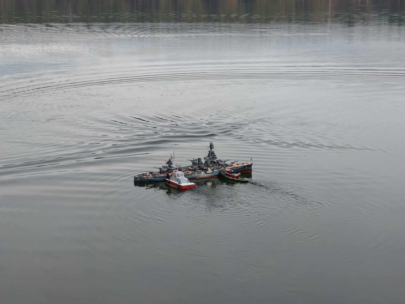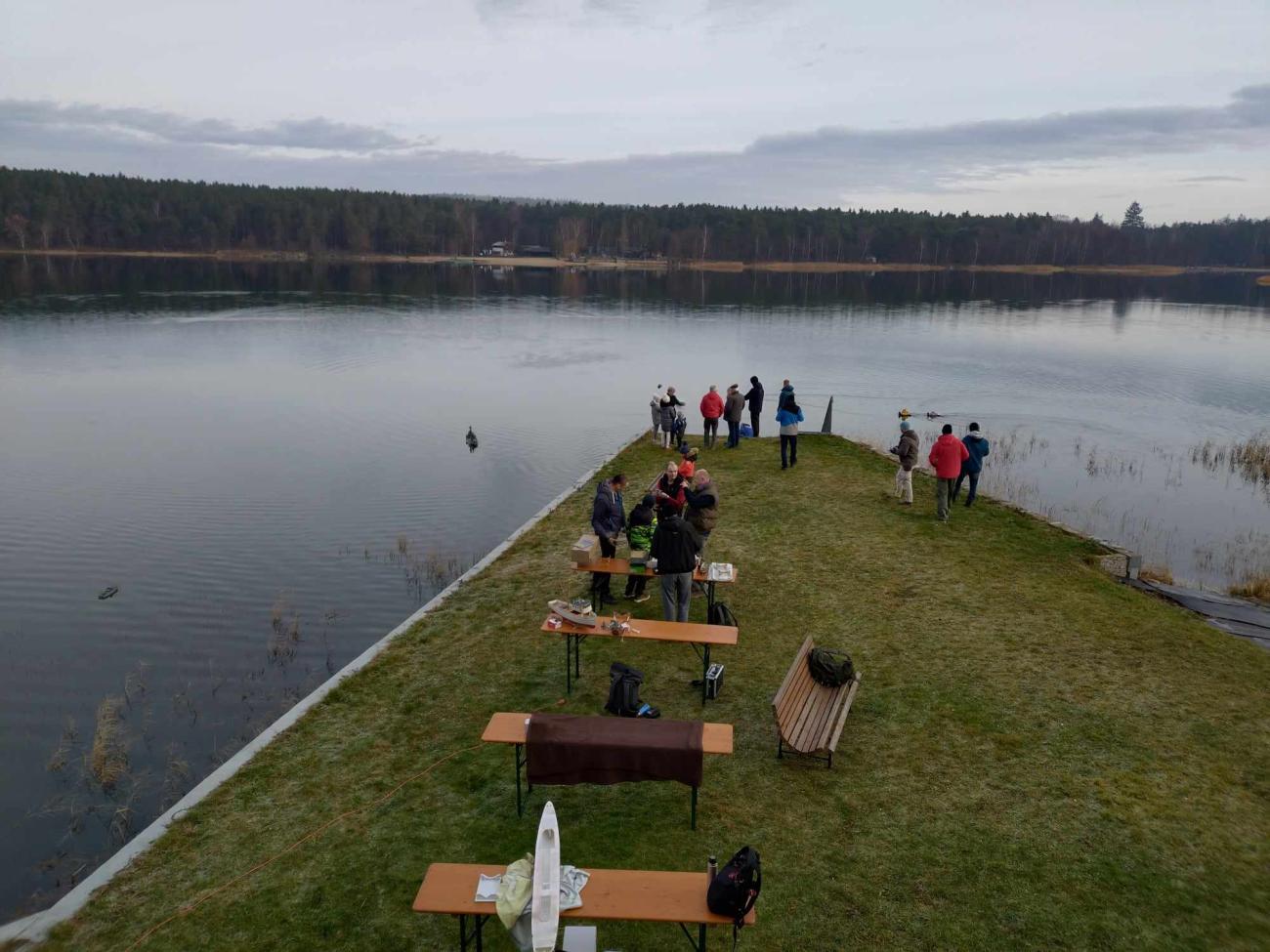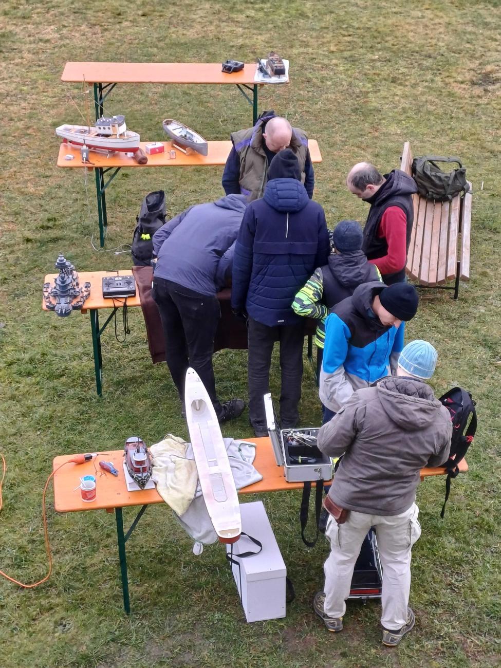 Za zmínku například stojí Ondra Vladyka, který se zde objevil se svojí majestátní bitevní lodí Texas v měřítku 1:100, která se již moc na akcích bohužel neobjevuje. Dále zde také byl můj parník, kterému sice úplně nesvědčily nízké teploty, ale svou (ne)funkčností všechny jistě pobavil. A i když vlastně nebyl žádný jasný program, pouze jsme naposledy v roce vytáhli své modely, abychom rozproudili hladinu rybníka a následně si do tepla šli sednout a pobavit se o našich úspěších a neúspěších, radostí i trampotách, modelařině i životě, tak myslím, že můžu s klidným srdcem zakončit článek se slovy, že jsme si to všichni užili a věříme, že příště to již budeme mít všichni v kalendářích a v hojném počtu se sejdeme a zakončíme rok 2024.