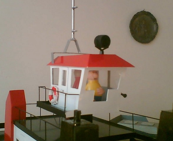 Nástavbu jsem se rozhodl udělat z desek PSH, které jdou při tloušťkách kolem jednoho milimetru stříhat nůžkama. Jednotlivé díly drží k sobě „svařovací“ lepidlo na plasty Tamiya a o proti vteřinovému lepidlu, spoj není křehký. Stříkal jsem stejnými barvami ve sprayi. Po zaschnutí barev jsem přišrouboval motory MIG 400/6V, které řídí regulátory DSYS 16A a přišrouboval serva. Po vyzkoušení ve vaně jsem uzavřel servisní otvor na zádi, který jsem přilepil silikonen, aby v případě nouze šel otevřít. Nástavba se mi zdála stále ještě hodně chudá a dal se do výroby zábradlí z 1mm mosazního drátu. Protože to bylo mé první zábradlí v životě, postupoval jsem podle návodu publikovaném zde na monaku. Po pájení, které mě překvapilo, stejně jako výsledek, který sice nebyl úpně dokonalý, ale byl jsem s ním docela spokojen, jsem zábradlí přestříkal. Do trupu ho fixuje opět epoxy s plničem.