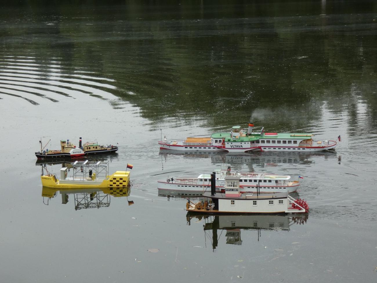 K mému zklamání účast meziročně poklesla, když namísto 9 kolesových lodí jich lodní modeláři přivezli jen 5. Parní stroj, který kolesovým parníkům tolik sluší, tentokrát do svého modelu neosadil nikdo. I Jiří Voráček vsadil na elektromotor, se kterým je před i po jízdě méně práce.