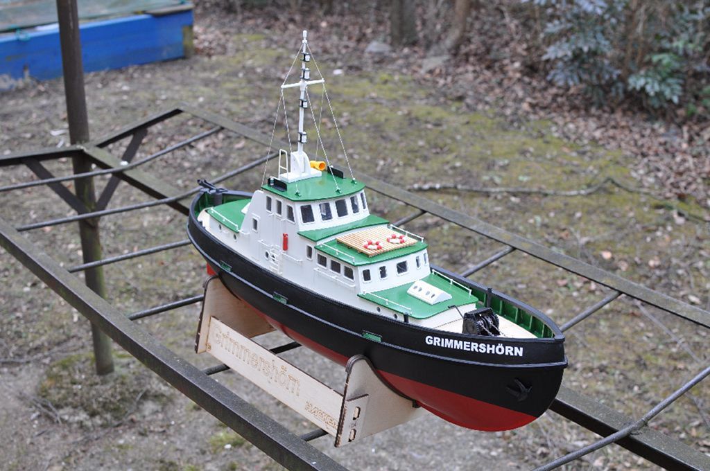 Jakost povrchu jsem volil s vědomím, že ještě na loď přijde stříkací tmel, základová barva a poté finální barva. Nebaví vás tmelení a broušení? Dovolím si lehce odbočit – Grimmershörn byl ve stadiu hrubé stavby, když jsem si koupil starší kýlovou plachetnici délky 7 m. Před sezonou bylo nutné obrousit trup pod čarou ponoru a obnovit nátěr. Když jsem profi bruskou dokončil jeden bok a ruce mě bolely tak, že jsem nemohl uvěřit, že bych mohl ještě kdy brousit tu druhou půlku, tak jsem vzpomínal na všechny modely, kde mi přišlo broušení jako obtížné…