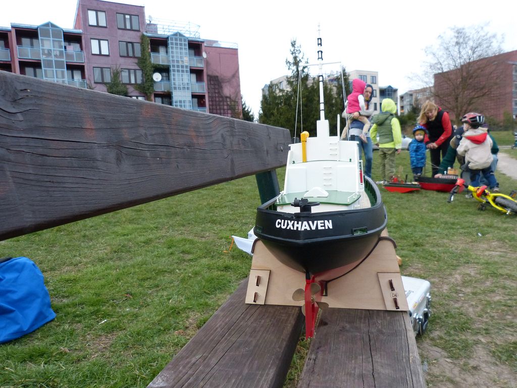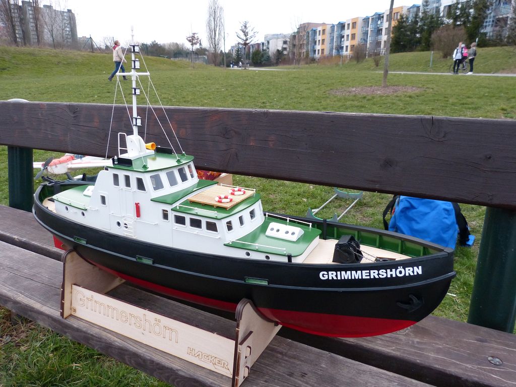 Loď jsem zajížděl na Lužinách při letošním „otevírání vody“, ještě jsem hodně narychlo měnil regulátor, původně jsem měl v lodi starší bez zpátečky. Použil jsem tříčlánek Li-pol, ale pohon byl zbytečně výkonný a rychlost nerealistická, takže již je pro další testy připraven dvojčlánek.