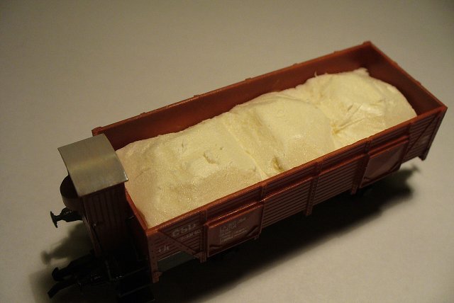 Náklad popele není nic jiného než cigaretový popel, zakapaný ředěným herkulesem. Nějaký popel jsem nasypal i na boky vozu.