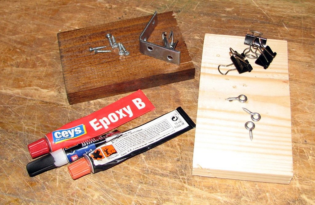 Stačí dvě malá prkýnka, několik hřebíčků, skobiček nebo oček, úhelníček a čtyři vruty. K tomu všemu klipsové svorky na papíry, stačí ty nejmenší. Prkýnka lehce zabrousíme, ti pečlivější je přiříznou anebo natřou. Pomocí úhelníčku vytvoříme stojánek, na který dáme hřebíček, očko či skobičku, na které budeme tuby věšet. Jak? Stačí klipsu přichytit na konec tuby a zavěsit.