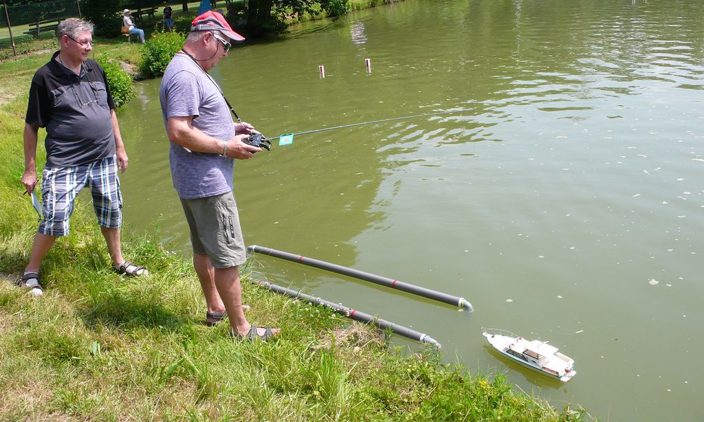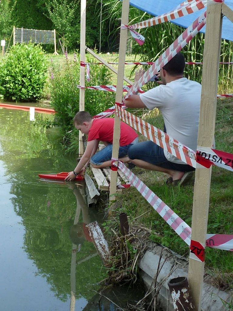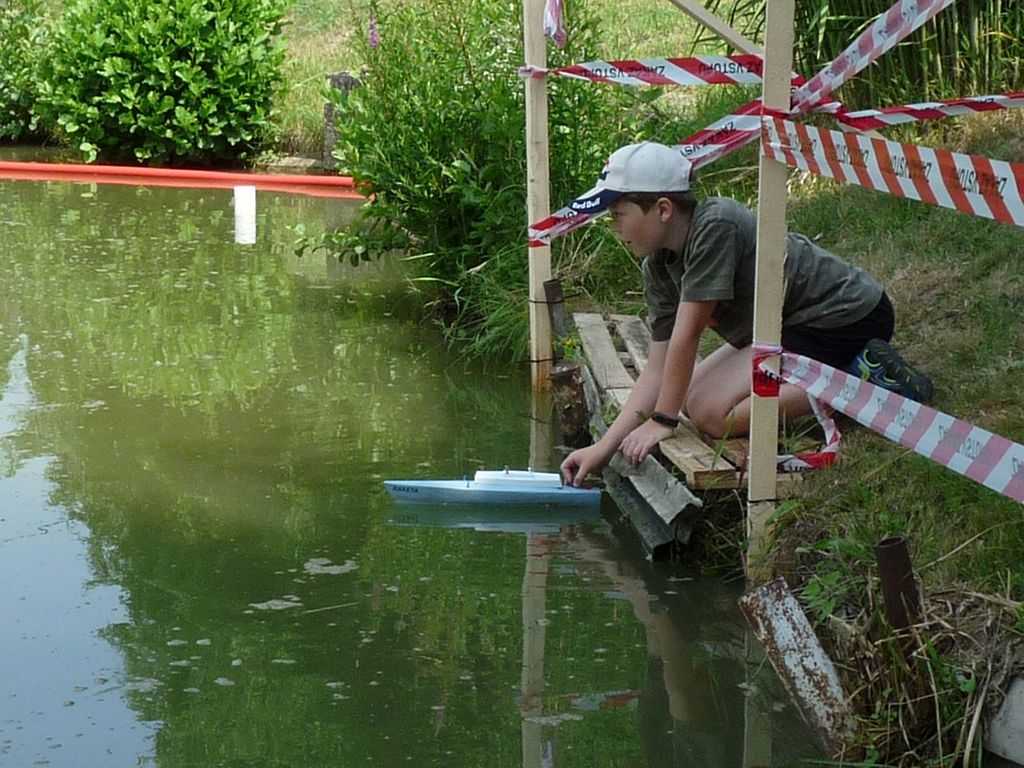 Za krásného počasí se tentokrát v „přístavu” sešli soutěžící v hojném počtu. Přijeli z blízka i z daleka, aby s lodními modely soutěžili v pěti samostatných kategoriích (EX-500, F3-E a 3x F4). Až z Pardubic k nám zavítal pan Jaroslav Jína a nejpočetnější výpravu tvořil kroužek „loďkařů” z Hukvald. Soutěžících tedy bylo celkem 36. Protože někteří aktéři jezdili dvě kategorie, počet startujících se vyšplhal na 55. Soutěž plachetnic Footy se neuskutečnila. Důvodem byla termínová kolize se soutěží Moravského poháru, a tak pořadatel neobdržel včas dostatečný počet přihlášek. Přesto se nakonec v areálu LAŠA objevilo 5 Footyn, které se předvedly v ukázkových jízdách. Předpokládám, že si tak jejich majitelé zajezdili víc, než kdyby čekali na soutěžní start.