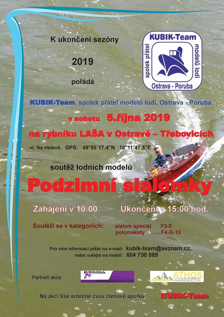 Spolek přátel modelů lodí – KUBIK-Team z Poruby měl v plánu sezónu ukončit, opět jako vloni, soutěží PODZIMNÍ SLALOMKY 2019. Ovšem, člověk míní a osud mění. A tak letos byly konce sezóny dva. Ale ani jeden nebyl příliš radostný. Takže popořadě.