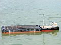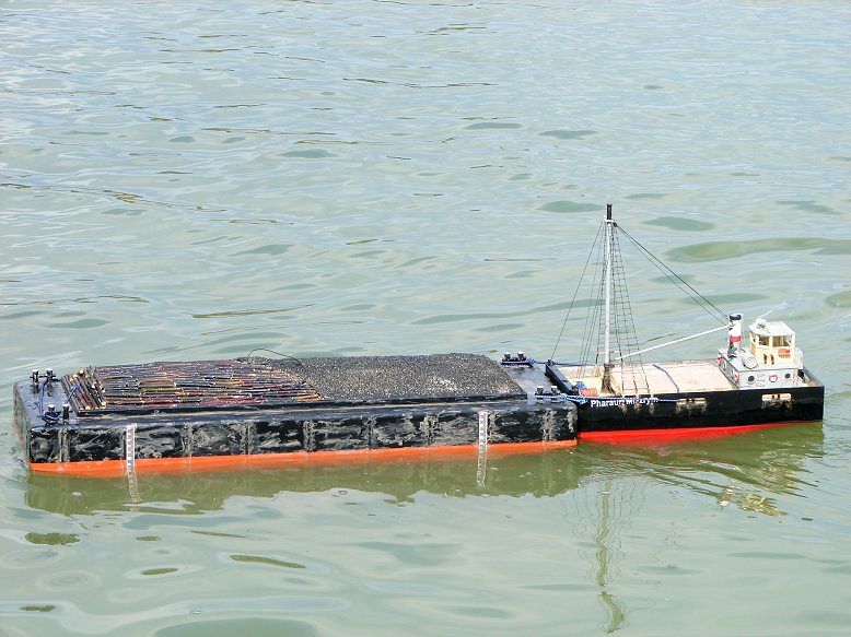 Boky lodi a její dno jsou „ozdobeny“ otěrovými lištami nařezanými z 1mm smrkové dýhy. Nátěr pod čarou ponoru jsem provedl štětcem a stříkána je pouze horní černá část. Vzhledem k následnému patinování rezavě hnědými fleky a pracovnímu zařazení není nedokonalý povrch na škodu.