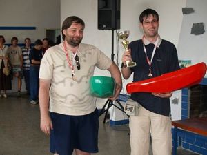 Den jsme skončili s 9 body, nic moc výsledek, ale bylo to za námi. Odsoudcovali jsme druhé kolo a závodní den pro nás skončil, protože jsem i přes Ivvovo přání odmítl absolvovat třetí jízdu. Zkusili jsme si ji jen mimo soutěž, hladina jako sklo a bez doteku, později jsem svého rozhodnutí litoval. Sobota se chýlila ke konci a tak se už jen konala dětská soutěž která se Pavlovi s Romanem opravdu povedla, Pája (dcera) o ní mluvila celý večer. Večerní zábavy jsem se neúčastnil, nezbyli mi už síly.