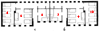 ubytování ve třech zděných chatách, které jsou v plánku červeně orámovány.