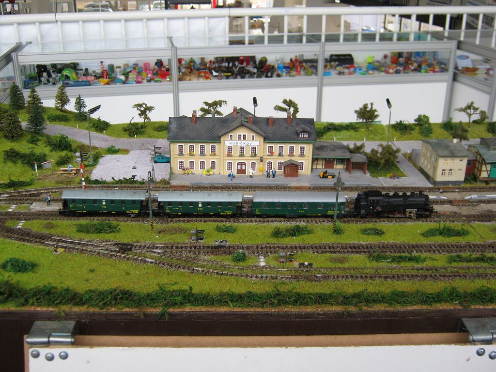 Tyto stránky jsou určeny pro modeláře lodních modelů, ale určitě mnoho z nás buď začínalo, nebo si jen tak pro radost odskočilo i k jiným druhům modelů. Já jsem před mnoha lety postavil menší kolejiště pro svého syna. Protože se toto kolejiště dá celkem snadno přepravovat, již několikrát bylo na této výstavě umístěno. No a když se na kolejišti rozjedou vláčky, rodiče potřebují hodně trpělivosti, protože odtrhnout děti od kolejiště dá práci. A nejen děti. Hodně dotazů padalo také od důchodců. Některé jsem tam zahlédl každý den výstavy.