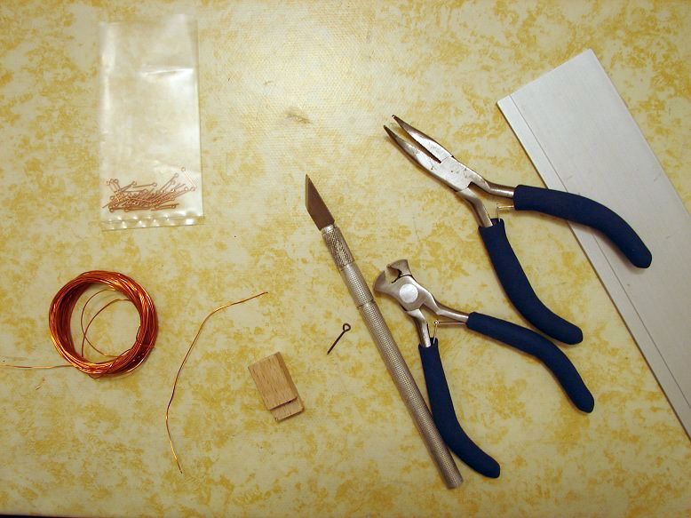 Pro výrobu oček je potřeba měděný nebo mosazný drátek patřičného průměru, jednoduchý přípravek, který snadno vyrobíme ze špalíčku tvrdého dřeva, a běžné nástroje.