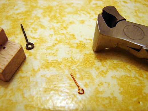 Každý stavitel modelů historických plachetnic potřebuje spoustu drátěných oček. Jsou zapuštěna ve dřevě a kouká z nich jenom "kruh" (případně s navlečeným volným kroužkem), ke kterému se vážou lana. Výrobci stavebnic ale často dodají očka nemodelově velká a téměř vždy je jich málo. U mého Granada byla velikost v pořádku, ale dodanou stovku jsem vyčerpal, aniž jsem vlastně začal stavět. Proto jsem se rozhodl zbývajících pár set oček vyrobit. (Pokusil jsem se je nejdřív zbaběle koupit, ale místo drátu 0.4mm byla z 0.6ky, a to je pořádný rozdíl.)