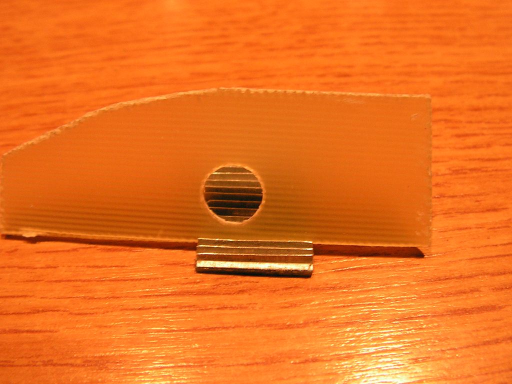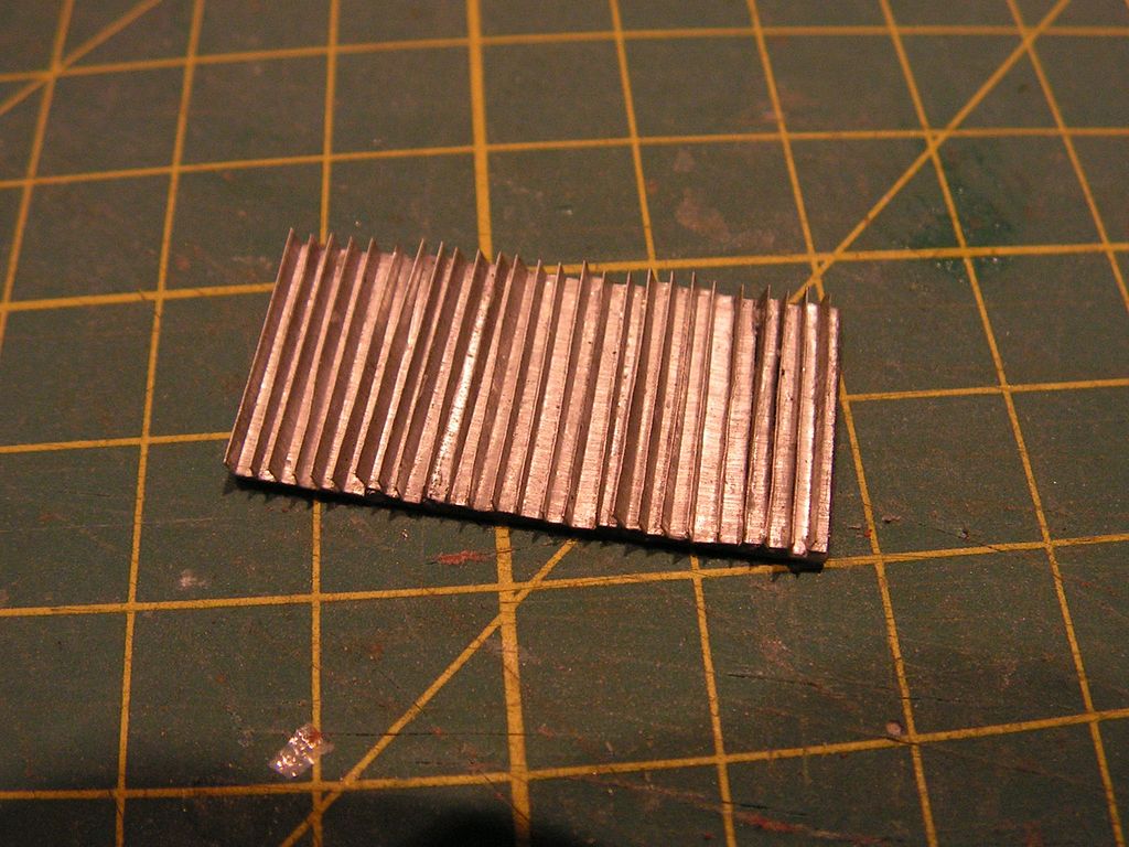 Žaluzie jsem vystřihoval obyčejnými nůžkami a ohýbal tak, že plech jsem vložil mezi dvě skleněné tabulky a podle rysky uprostřed žaluzie ohnul do pravého úhlu. Je důležité ohnout žaluzii takto, protože se pak lépe lepí na základovou desku.