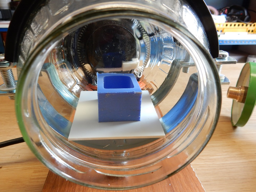 Podtlak lze průběžně zapínáním kompresoru udržovat. Nakonec otevřete spodní ventil, vpusťte do sklenice normální tlak, otevřete víčko a formu vyjměte. Závěrečné obrázky uzavírají tuto prezentaci.