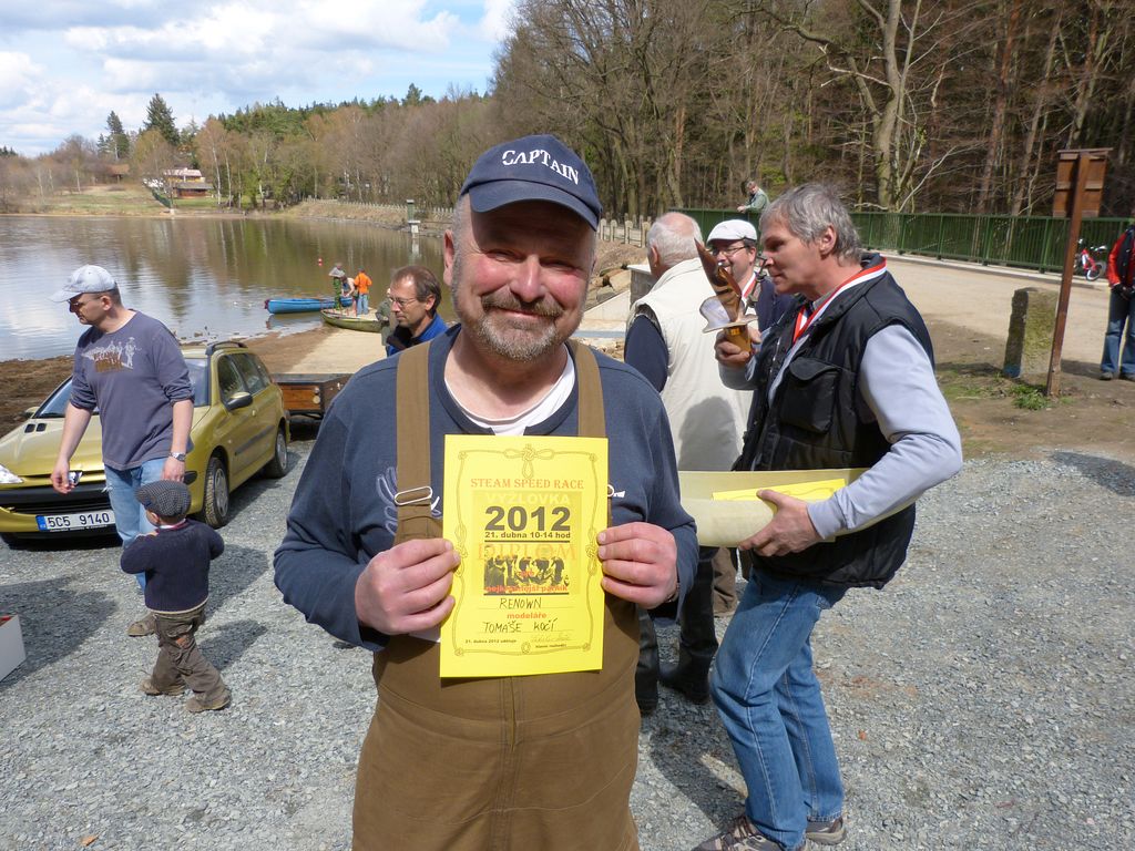 Přestože sám přivezl tři modely, na vítězství v žádné z kategorií to nestačilo. Nezbude než to zkusit při jubilejním, desátém ročníku, který proběhne v dubnových dnech roku 2013. Nastolený trend je jasný - od akce pro pár kamarádů Vyžlovka spěje k celonárodnímu srazu lodních modelů na páru. Snad příští rok dorazí i ti, kteří to mají daleko. O případný nocleh se snadno postaráme.