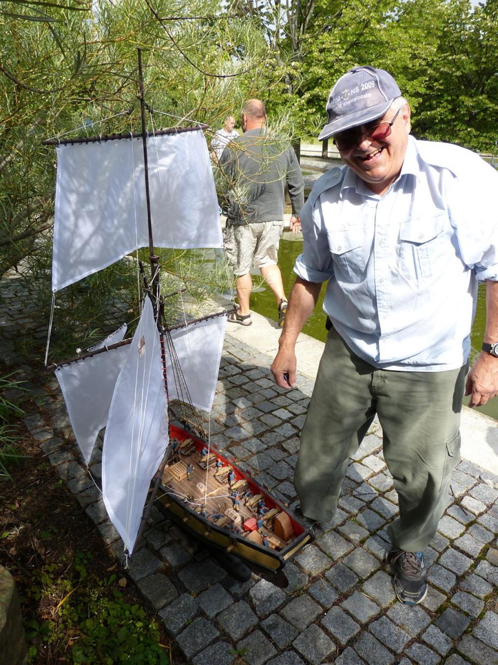 Jak na fotografiích vidíte, nebyl žánrově vyhraněný. Když frčel Tug Towing, stavěl remorkéry, když se rozjel Minisail.cz, byla to plachetnice HMS Speedy. Tu nám ukázal asi jen v létě 2017 na Proseku, o něco častěji vzal k vodě Footynu. S tou ho máme zachyceného naposledy, když mezi nás přišel na Podzimní Prosek 2024. To už měl hotovou i ponorku a oprášil polostavebnici parního stroje z odlitků… Prostě modelařil do posledních chvil a ještě 23. prosince nad ránem se naposledy přihlásil na náš chat.