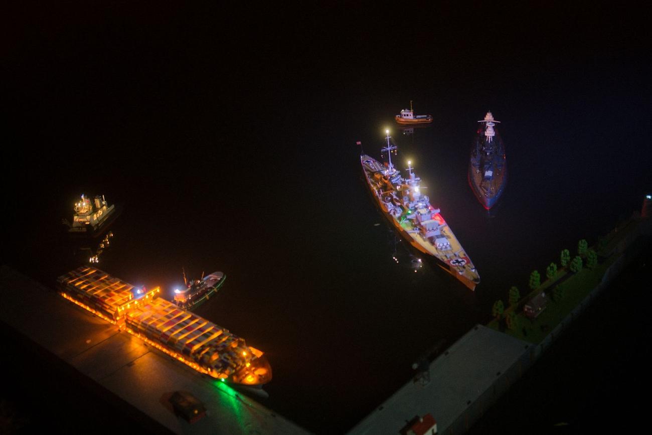 Moderní kontejnerová loď plus dvojice historických vojenských, bitevní lodě KM Scharnhorst a USS Nevada (která příjemně překvapila výrazným stavebním pokrokem a již vyhlížela prakticky jako hotová). Z civilních plavidel donesl RomanT plachetnici s pomocným pohonem, Svenny turistickou vyhlídkovou loď Vizibusz z Orlické přehrady (postavená metodou 3D tisku). Dále se po hladině proháněl jeden rychlý člun s mahagonovou palubou a několik remorkérů různých velikostí a typů.