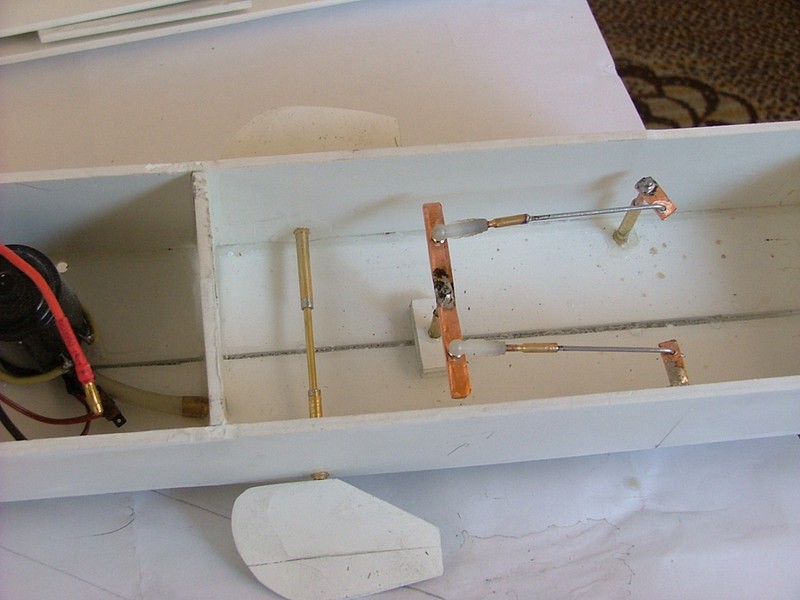 Ďalším krokom je uloženie zadného výpustného ventila v hornej časti komory a jeho pripojenie tiahlom k servu. Po tomto už môžeme balastnú nádrž uzavrieť vekom. Je potrebné znova dodržať zásadu tesnosti spojov. Svoju prácu teraz presunieme na špic, ktorý si najskôr vyrobíme na nečisto s kartónu. Jednotlivé diely po tomto vyrežeme z HP dosky a za pomoci teplovzdušnej lampy ohneme. Takto vytvarované diely zlepíme. Po obrúsení a dopasovaní k trupu v hornej časti zapustíme kovový pánt krídlový, zaistíme ho skrutkami a zalepíme Surefixom. Na vrchnú časť odklopnej špice vyrobíme držiak závažia, ktoré otvára špičku pri vztýčení Urzela. Držiak je vyrobený z mosadzného drôtu o priemere 3 mm a spájaný letovaním. Samotná záťaž je vytvarovaná z olova. Na držiak je prilepená. Váhu olova je potrebné zistiť skusmo mne vyšla na 98 g. Takto zhotovený držiak prilepíme na špic. Je ešte potrebne vyrobiť kryt ovládacej komory a to z HP dosky. Je zlepený z dvoch vrchných dielov a dvoch čiel. Ako pánt som použil trubku s tiahlom na ovládanie kormidiel lietadla. Je vyrobený z plastu. Trubka pántu o dĺžke 1 cm je prilepená na koncoch veka a tiahlo prechádza jeho okrajom. K trupu zatiaľ veko ešte nepripájajme, prekážalo by nám pri montáži ovládacích prvkov.