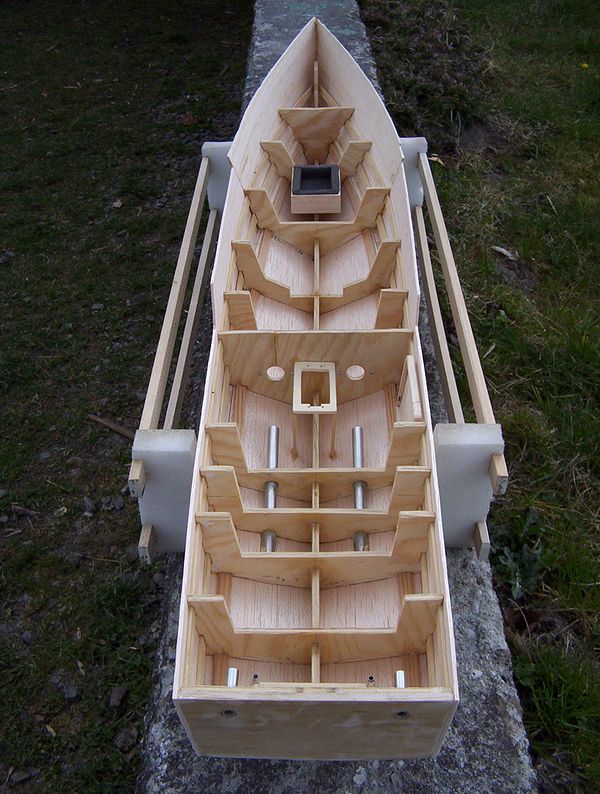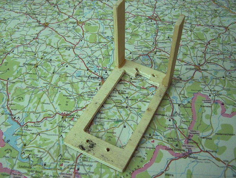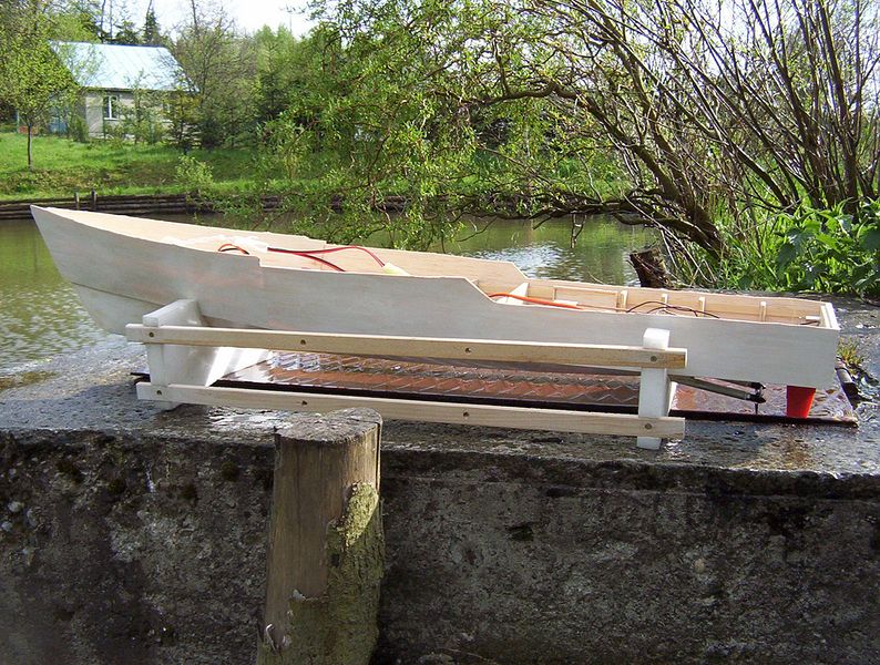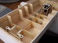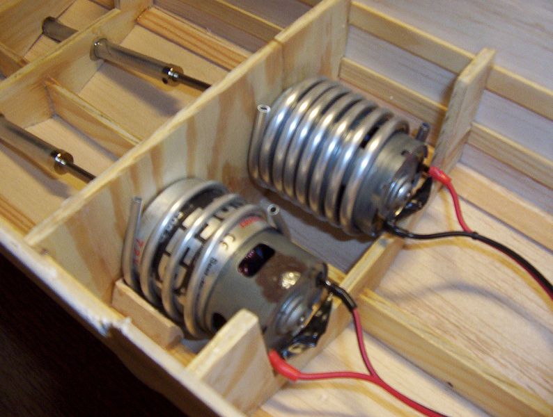 Hrubá stavba trupu je hotová a tak jsem se rozhodl zalepit do trupu hřídele, kormidla, a protože jsem hodlal udělat vodní chlazení, tak i jeho výstupy. Začal jsem chladícími otvory. Stejně jako originál, tak i můj koráb je má na zádi. Podle plánu jsem vyměřil jejich polohu a nahrubo vyvrtal otvory. Poté jsem jehlovým pilníkem přesně dopiloval dírky na požadovaný průměr.