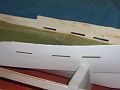 Teď už nezbývalo než dopilovat otvory, které zasahují do vrchní části a celek vytmelit a vybrousit. Nakonec mě ještě napadlo nasimulovat „housenku“ sváru mezi vrchní a spodní částí bortu. Na fotkách byla celkem výrazná. Vzal jsem tedy tenký drát, nastříhal z něj kousky pasující mezi vzpěry, a epoxidem nalepil na své místo. (Na obrázku už je bort po nástřiku plničem, bohužel nemám jiné ).
