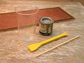 vyrovnáte, tak aby neměla záhyby. Na matrici o velikost 10×30 cm budete potřebovat asi 25 ml epoxydu 1200. Uvaříte si v konvici vodu. Tu nalijete do větší nadoby a v menší ohřejete
