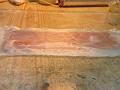 Přiklopíte sklem. Sklo lehce přitlačíte tak, aby se epoxyd rozlil všude. Necháte vytvrdit 10 hodin. Po deseti hodinách opatrně odstraníte sklo. Odstřihnete přetečené kraje a hotový plát s matrice sloupnete.