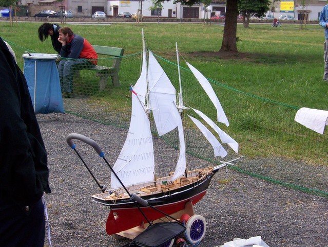 Proc zklamani? Nejak se zacit musi (pokud se chce) a takhle je to urcite hezci zacatek, nez s nejakou plastikovou stavebnici. Problem je spis v tom, ze Karlovy modely jsou tak perfektne zpracovane, ze je ma clovek strach vlozit do vody. Ale i na to se da zvyknout, resp. si castym plachtenim strach odvyknout.