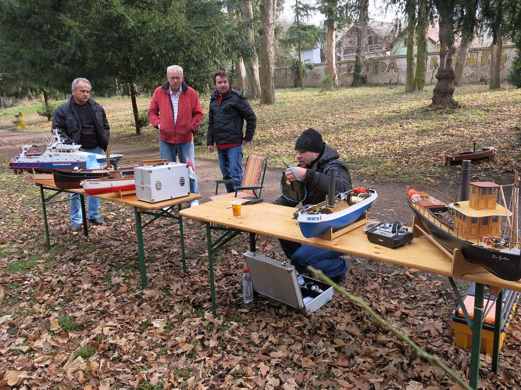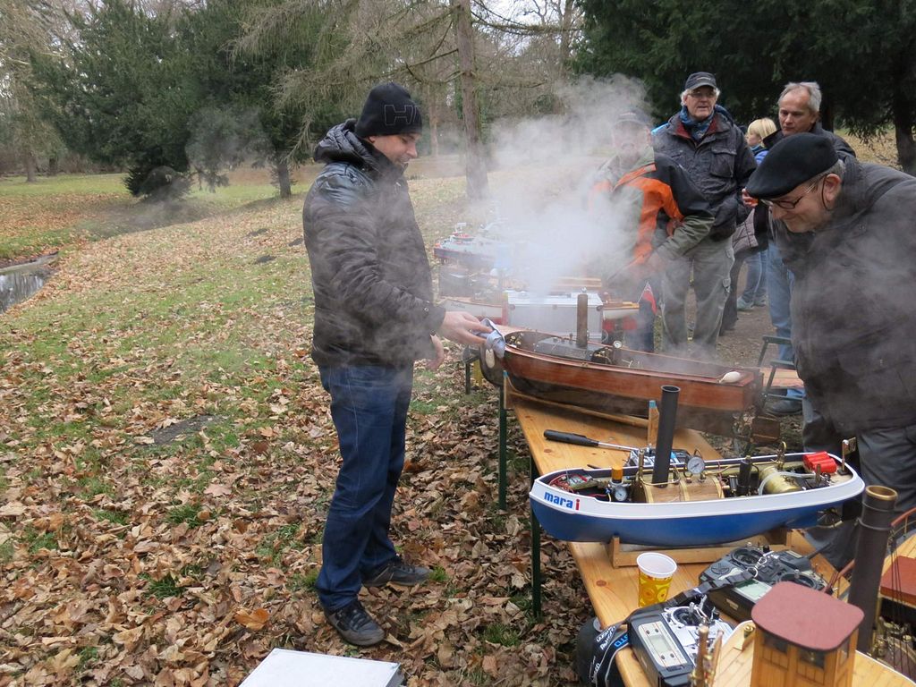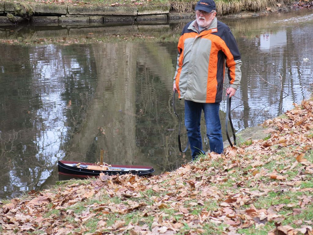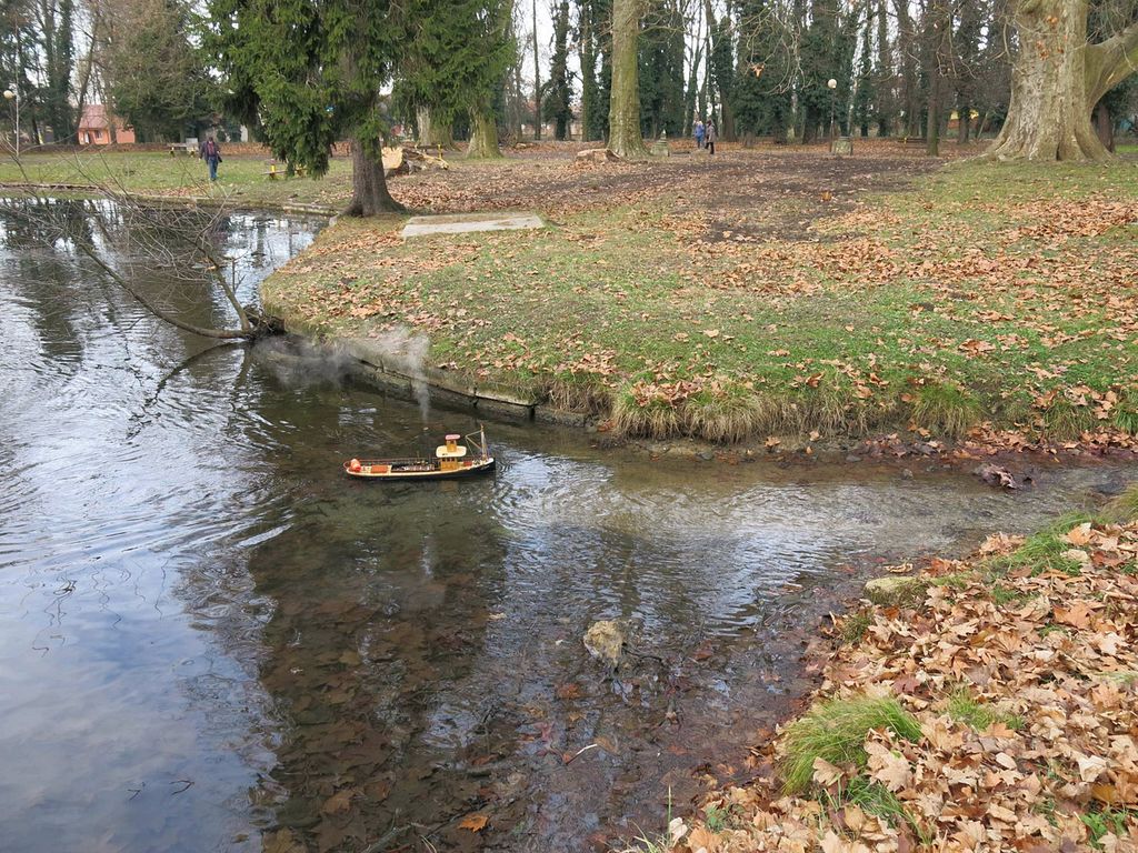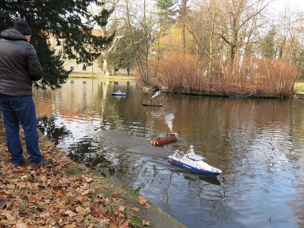 10. 12. 2016 10:00 h - bolo tam päť parníčkov a dve električky. Tie boli obvzlášť pekné. Jano Neupauer predviedol Archera vo výstavbe (zbraň na Vyžlovku) a starú lodičku s americkým motorčekom. Rišo Jankela jazdil a výdatne paril s Watildou, ja som plával so San Julianom aj proti prúdu potoka, ktorý zásobuje rybníček. Ten bol skoro celý zamrznutý, nám na poplávanie ostal len kus pri prítoku potoka. Bola to rozlúčka so sezónou a pekné poplávanie a stretnutie modelárov pred treťou adventnou nedeľou.