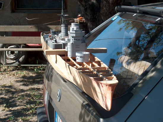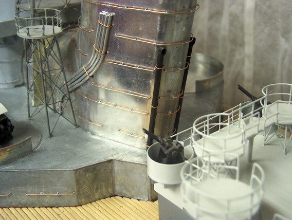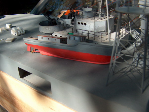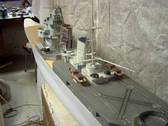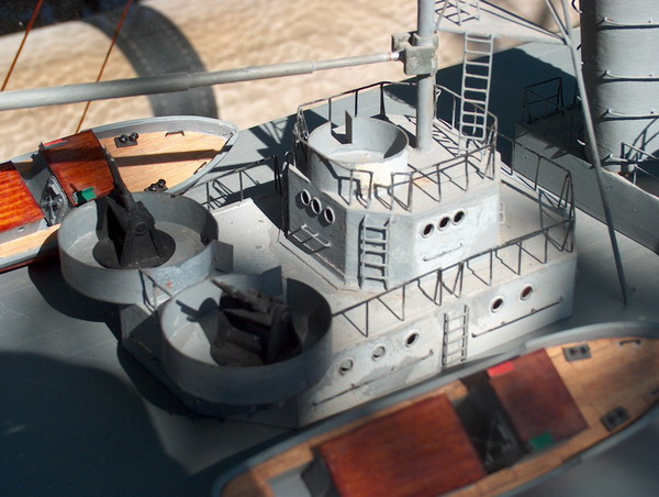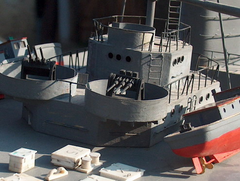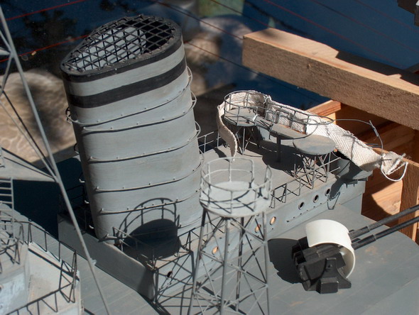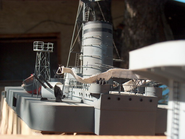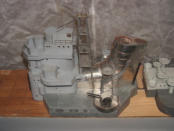 Rozrobený model japonského ťažkého krížniku z 2. svetovej vojny. Mierka 1:100. Trup drevený, nadstavby kovové.