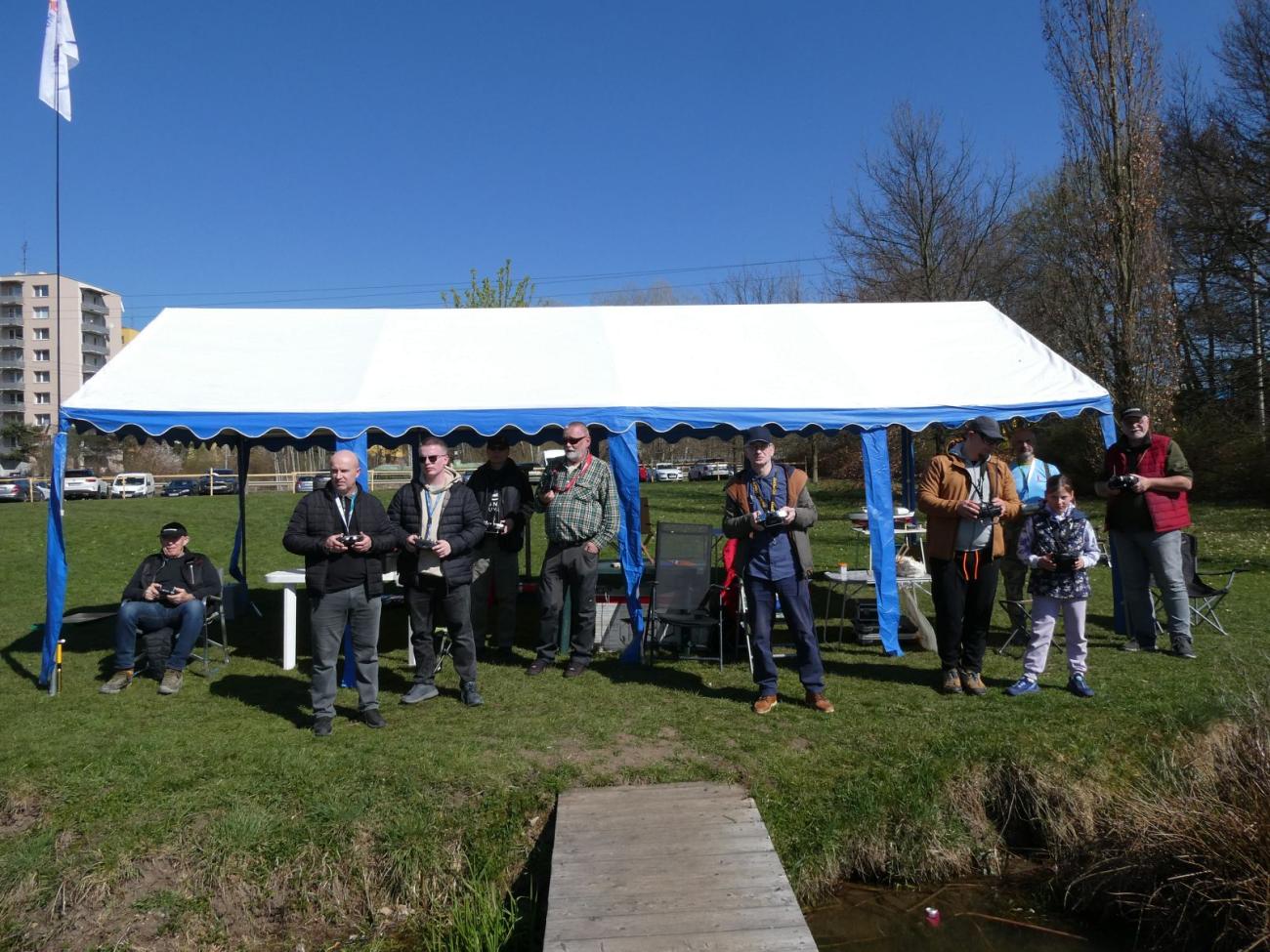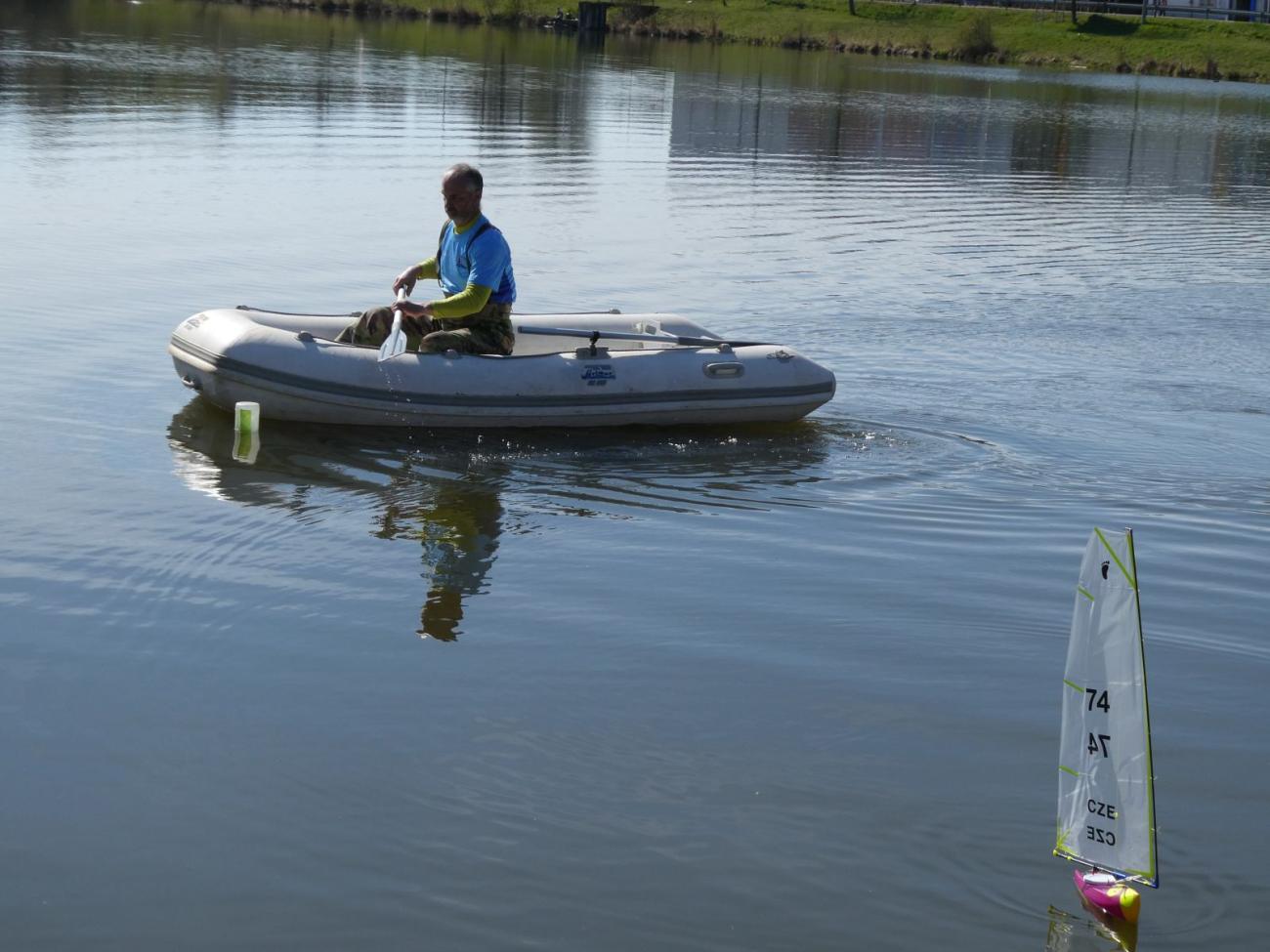 Když jsme s Bohoušem ráno přijeli na místo, byla ještě mlha a nepříjemně mrholilo. Než jsme vše připravili (stan, stoly, svážecí člun), mlha se zvedla a zpoza mraků začalo prosvítat slunce. Nakonec to byl krásný den u vody, přičemž odpolední teploty atakovaly 12 °C. Oproti raní námraze a pátečnímu sněžení celkem příjemná změna počasí. Zkrátka a dobře jsme měli jednou štěstí. Dokonce i při soutěži plachetnic trochu foukalo, takže se za dvě a půl hodiny stihlo 10 jízd, což při 11 modelech s účastí začátečníků není vůbec málo. Zvítězil ostřílený matador Jiří Šejvl. Další příčky na stupních vítězů obsadili modeláři z Polska, kteří k nám vážili cestu 400 km a přivezli jediné dva juniory.