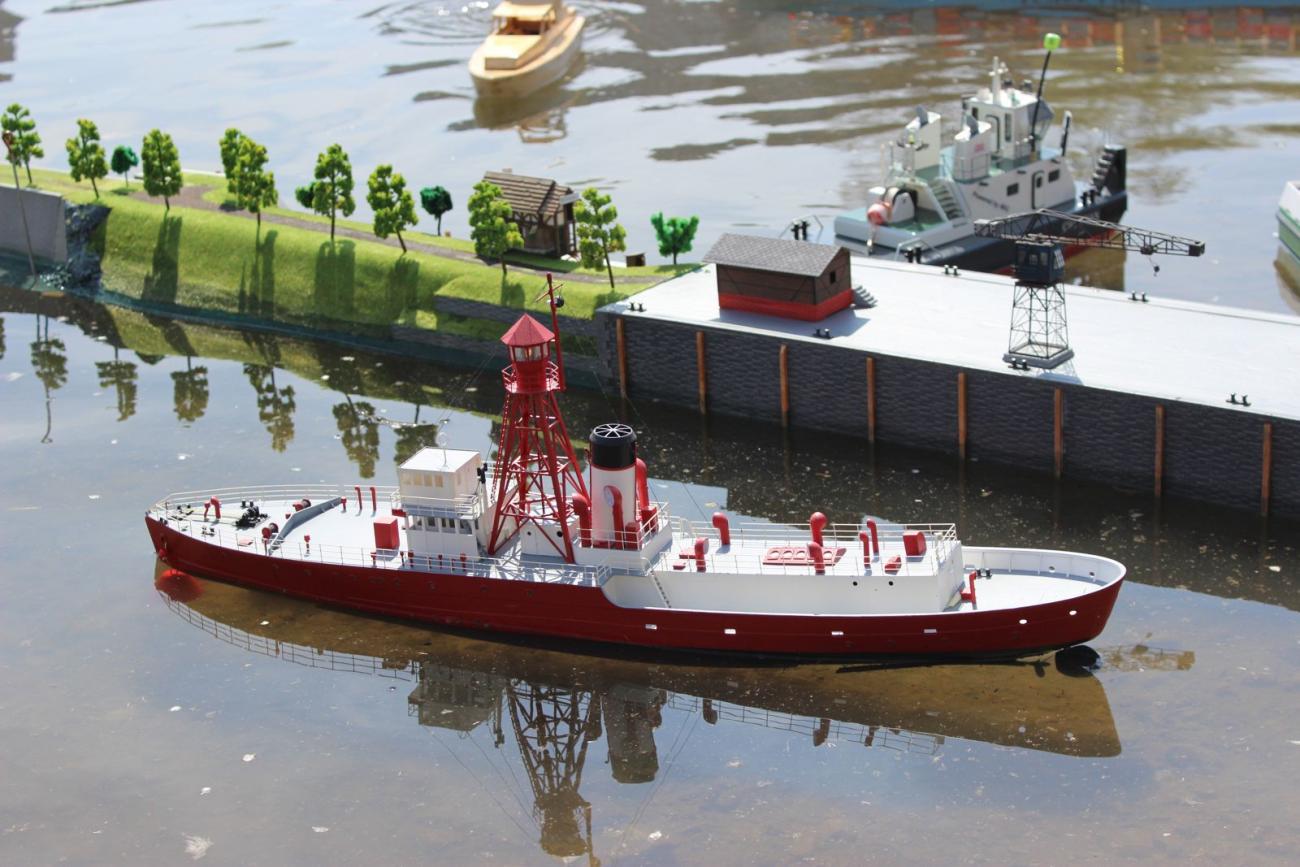 Vodní hladina se brzy proměnila v pestrou přehlídku modelů nejrůznějších kategorií. Byly zde k vidění elegantní jachty a mrštné čluny, robustní pracovní a obchodní lodě, včetně impozantní kontejnerové lodi, a nechyběly ani modely válečných plavidel. Zvláštní pozornost si právem vysloužila detailně propracovaná majáková loď, jejíž fotografie potvrzuje, že se jedná o typ modelu, který na podobných srazech není běžný.