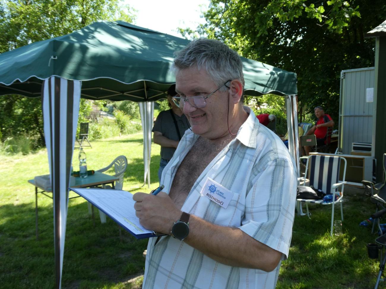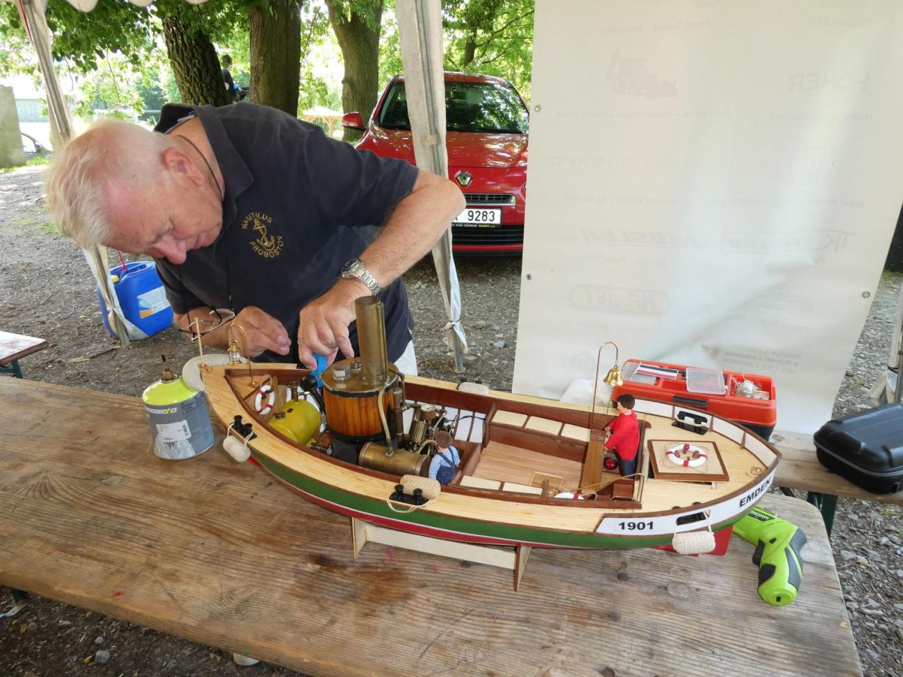 Než došlo na stavební hodnocení modelů parníků, které se po delší době sešly dokonce čtyři, zapojil jsem se na startovišti NSS jako rozhodčí-zapisovatel. Později jsem se zdržoval u motorových lodních maket, a to po většinu času na startovišti F2 s Jiřím Krupičkou jako rozhodčí, jelikož personální nouze tentokrát panovala i tam.