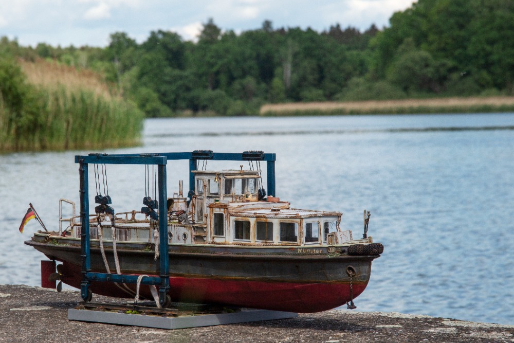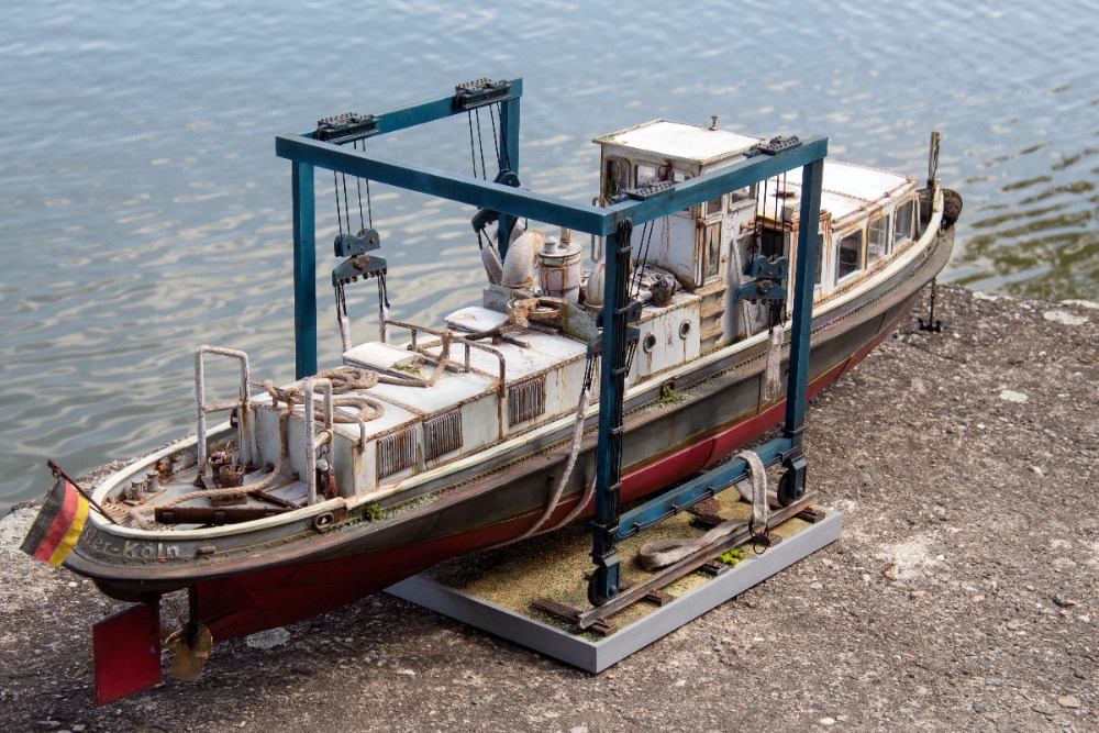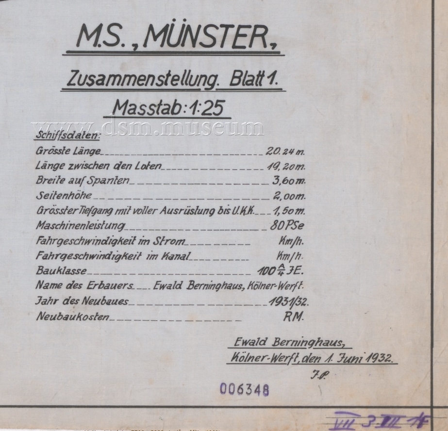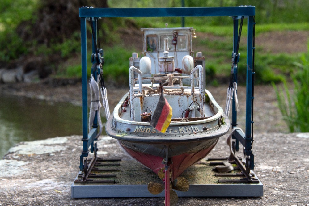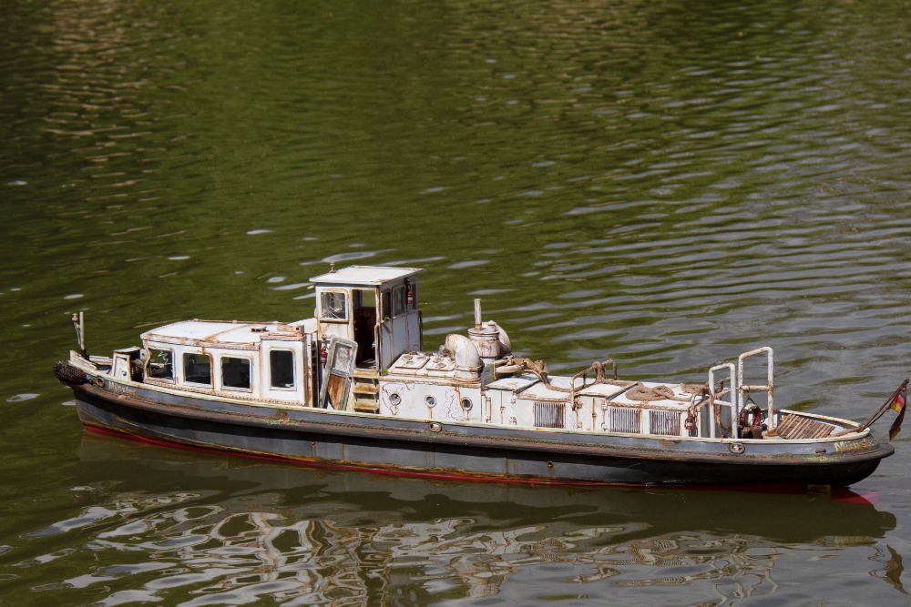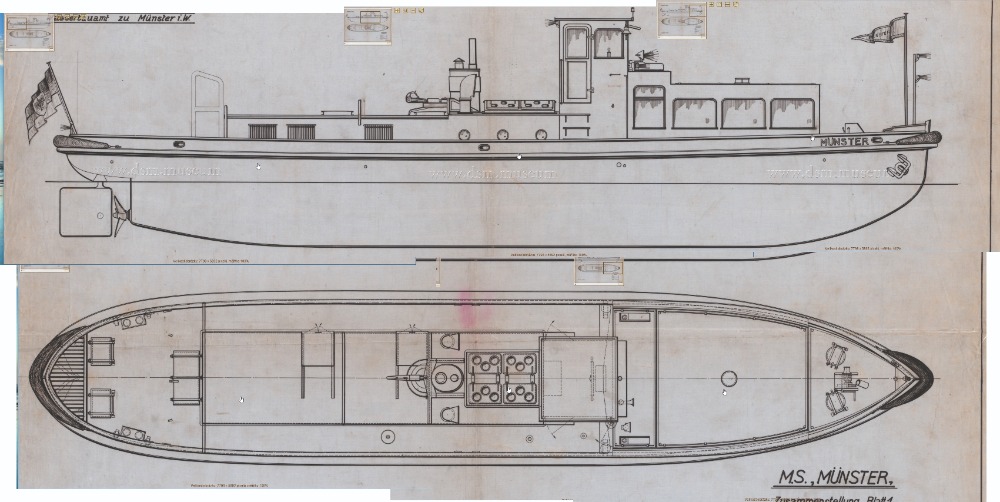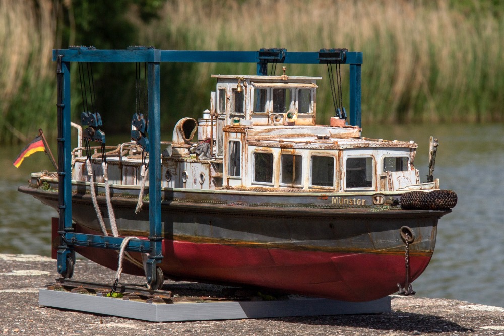 Münster, Německo 1932, model 1 : 20. Zpracováno dle původních plánů. Ovládání - motor, kormidlo, spouštění kotvy, světla a z komínku se kouří (někdy).