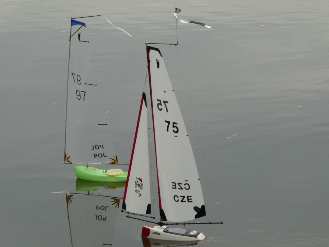 Trochu se to zlepšilo až po obědě, kdy dorazili majitelé plachetnic. Dva z Polska a dva z Prahy jsme doplňovali my dva s Bohoušem. Pod zataženou oblohou jsme za slabého větru do 2 m/s za dvě hodiny stihli 10 soutěžních jízd. Zcela nás převálcovali naši zahraniční hosté. Zvítězil jediný přítomný junior Jan Musiejkiewicz, který tak potvrdil své celkové vítězství seriálu mezi juniory, těsně druhý skončil jeho otec Kamil Musiejkiewicz a na třetím místě se s již větším odstupem umístil Jiří Šejvl. Lubomír Jančík si z Písku odvezl čtvrté místo, za ním jsem skončil já a poslední byl Bohouš.