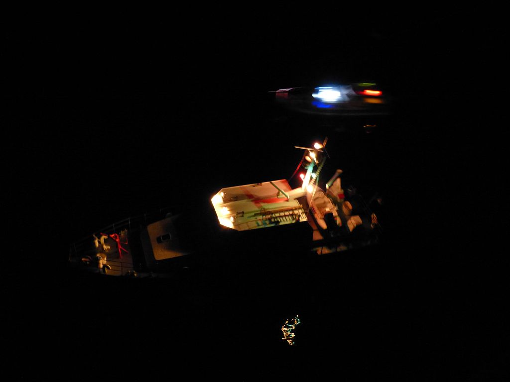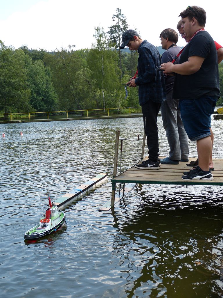 Hlídal jsem vrcholovou branku. U některých modelů byly průjezd či minutí vidět jednoznačně, u jiných jsem trochu tápal. Především šlo o modely přesvícené jako vánoční stromeček. Celkem se zapojilo 13 lodí. Jeden junior během čekání usnul a byl přesunut domů do postele. Příště by to asi chtělo pouštět účastníky na vodu podle věku, aby se dostalo na každého zájemce včas.